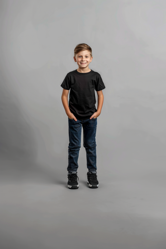 Baki_RoundNeck_BlackHalfSleeve_Kids_160basics