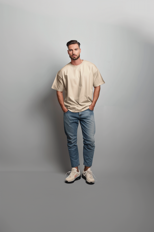 Beige Oversize T Shirt_Half Sleeves_Men_220GSM