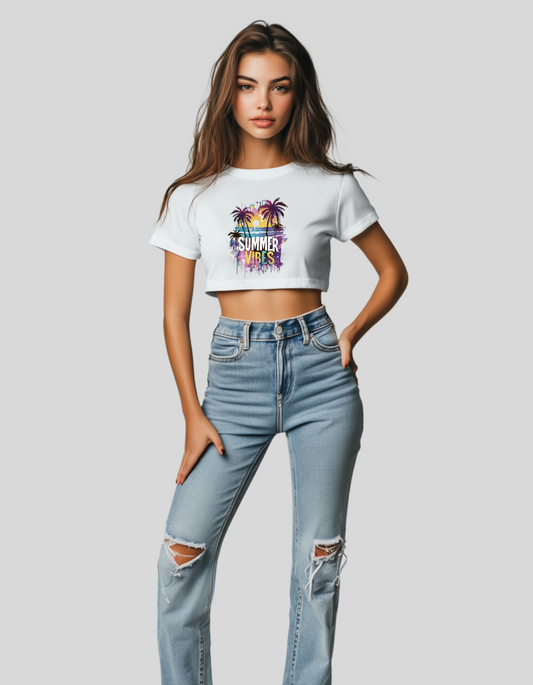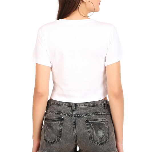 100% Cotton Women Slim Fit White Crop Tops with Prints