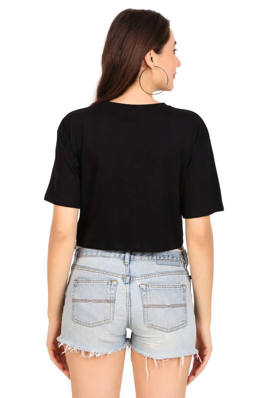 100% Cotton Women Slim Fit Black Crop Tops with Prints