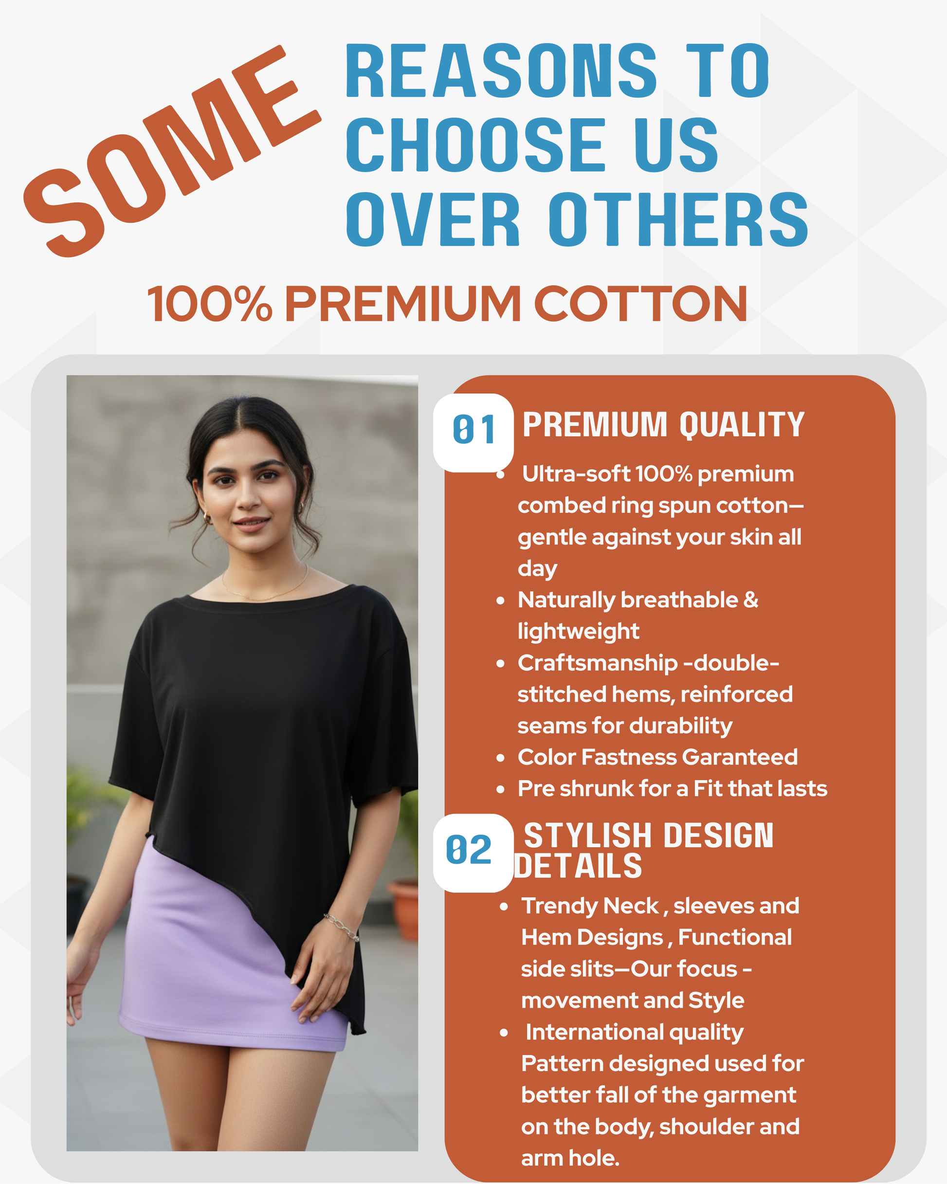 | Stylish Design Details | Trendy Neck , sleeves and Hem Designs , Functional side slits—Our focus -movement and Style International quality Pattern designed used for better fall of the garment on the body, shoulder and arm hole. |