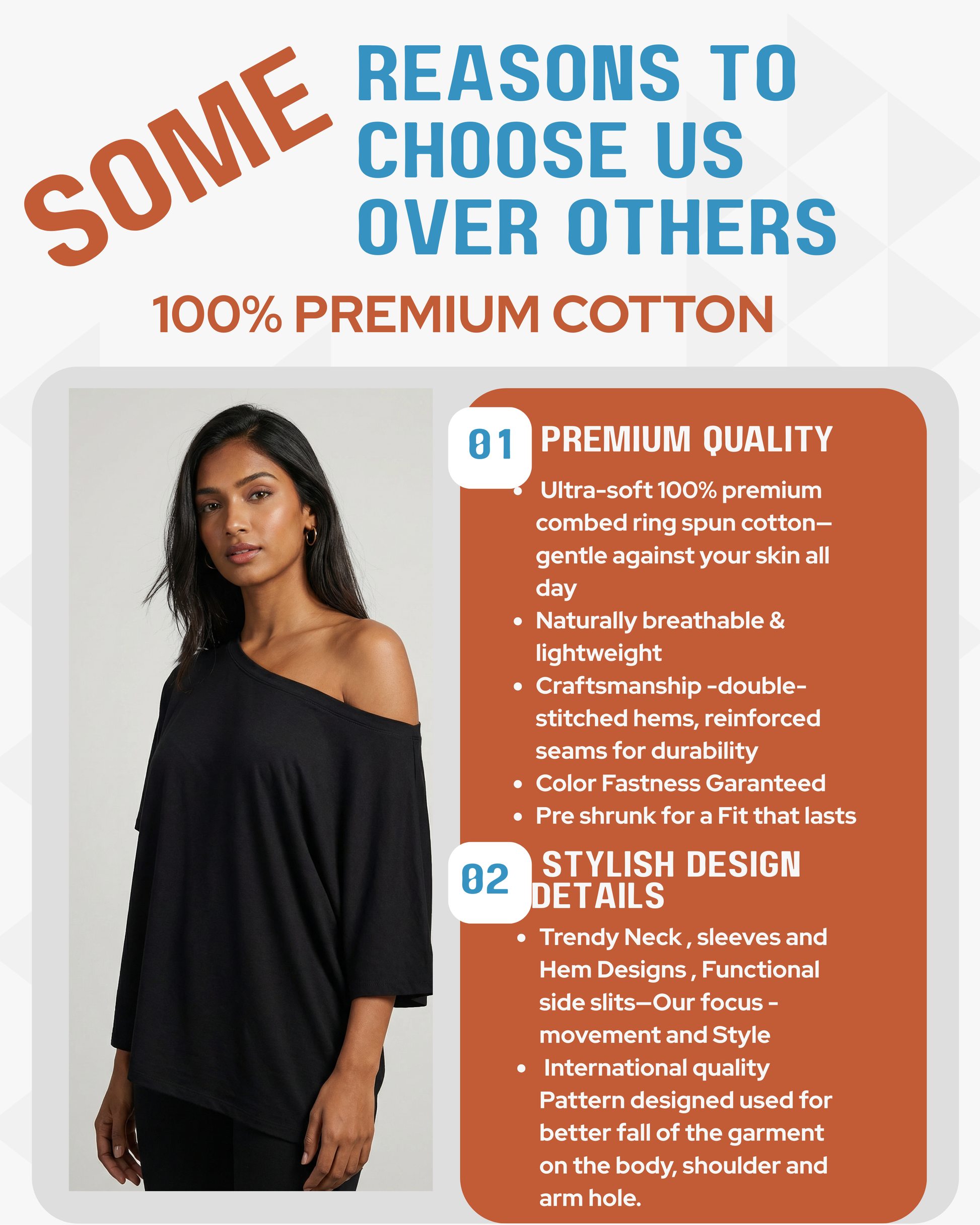Ultra-soft 100% premium combed ring spun cotton—gentle against your skin all day Naturally breathable & lightweight Craftsmanship -double-stitched hems, reinforced seams for durability Color Fastness Guaranteed Pre shrunk for a Fit that lasts |